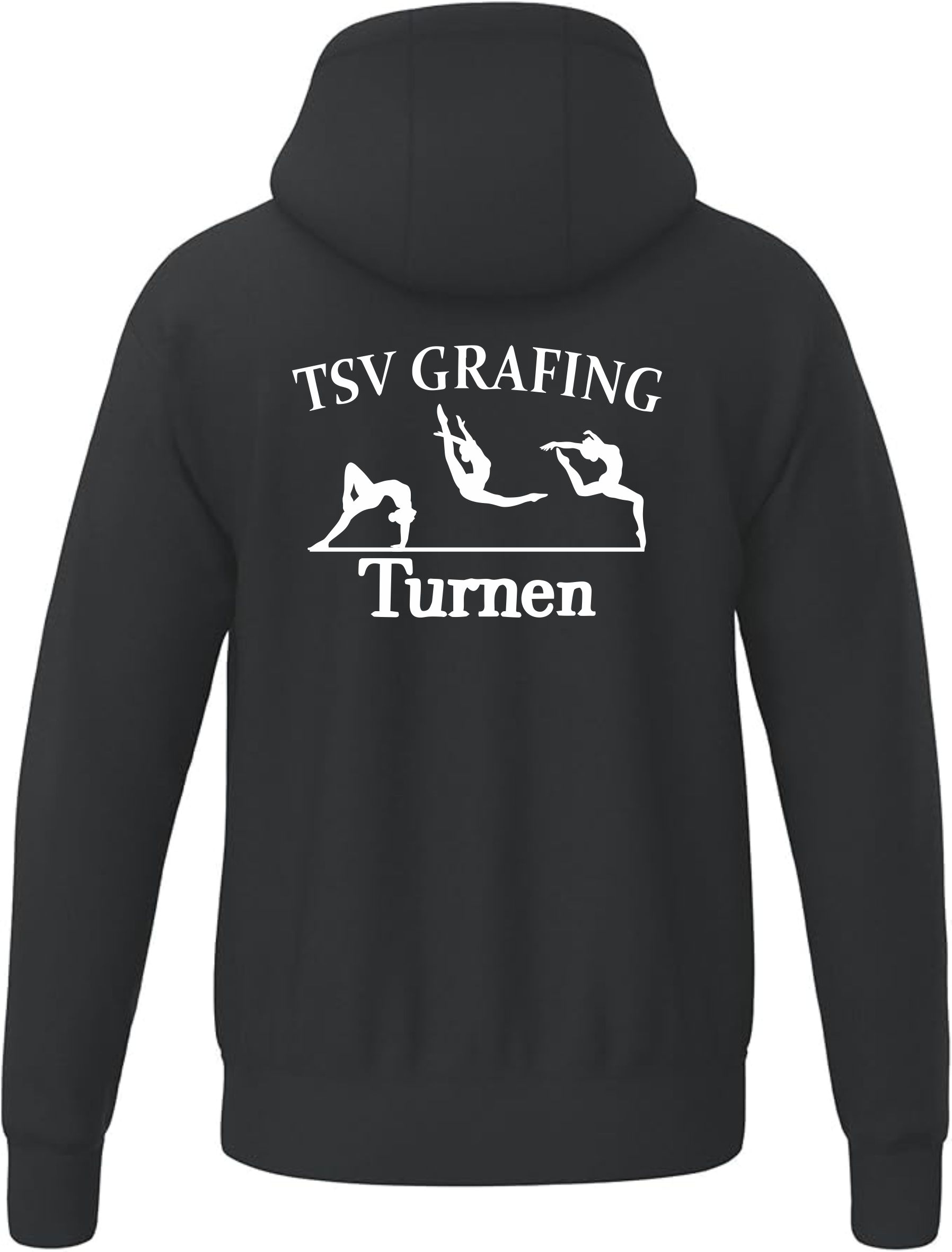 Hoodie mit Vereinslogo auf der Brust und Vereinsschriftzug am Rücken. Auf Wunsch mit Initialen.