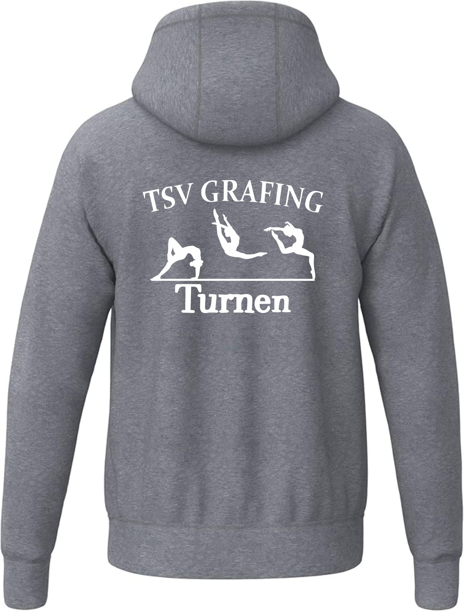 Hoodie mit Vereinslogo auf der Brust und Vereinsschriftzug am Rücken. Auf Wunsch mit Initialen.